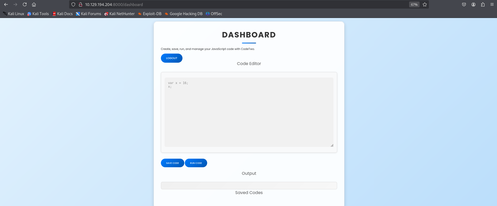 Another interesting function which is the /run_code. So, let’s take a tep back now and login to this website to see what is really is happening here.