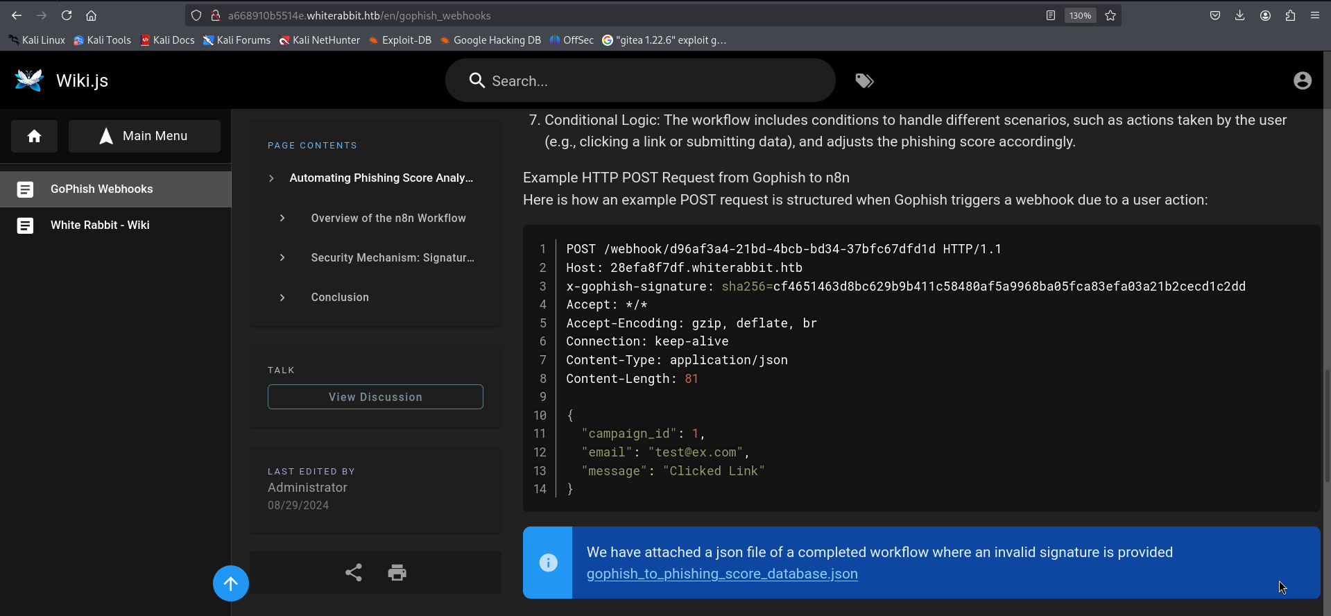 WhiteRabbit is an insane machine from HackThebox where i started with Virtual host fuzzing revealed internal status subdomain –> Misconfigured Uptime Kuma / WikiJS stack exposed GoPhish webhook and HMAC secret –> Forged valid x-gophish-signature to bypass webhook authentication –> SQL Injection in webhook endpoint disclosed Restic repository credentials –> Restic repository dump led to Bob’s SSH private key –> SSH access as Bob and abuse of sudo-allowed Restic for root data exfiltration –> Extraction of Morpheus SSH key and user-level access –> Predictable password generator exploited to recover Neo credentials –> Neo had full sudo access, leading to root compromise