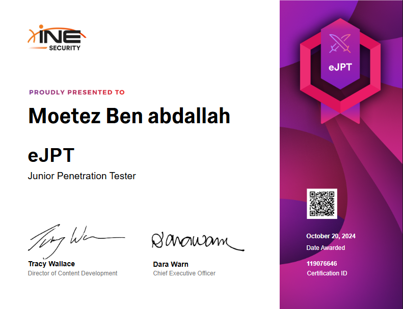 Hey everyone! Iโm Moetez Ben Abdallah, and Iโm excited to finally share my thoughts on the eLearnSecurity Junior Penetration Tester (eJPT) certification, which I passed back in October 2024.
